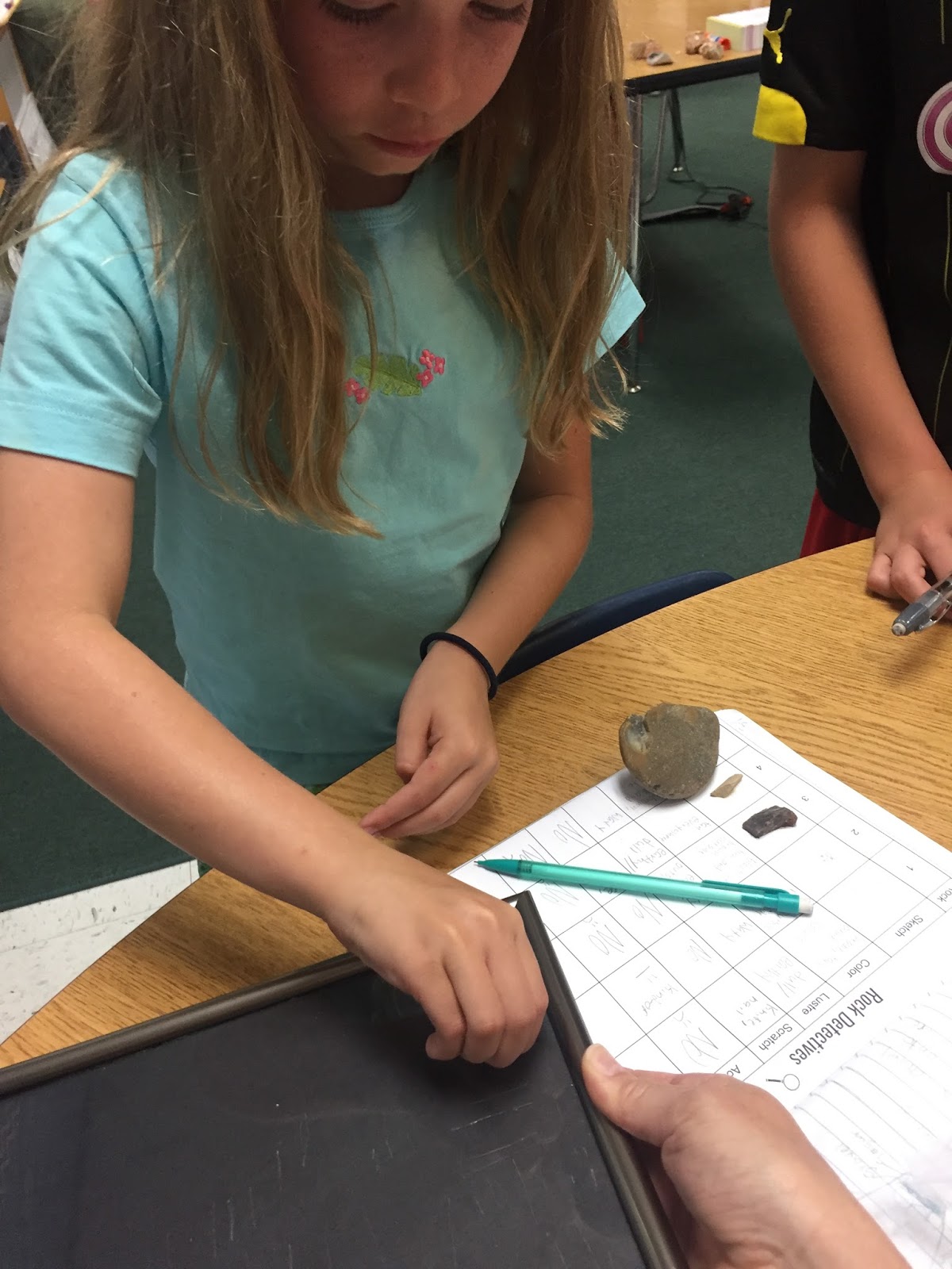 We continued our study of rocks and after conducting a series of tests, have started determining the types of rocks in our collection.